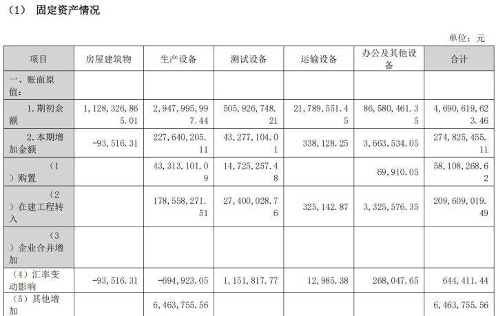 而在信维通信的长期经营资产端占比最大的是厂房和机器设备。从下图信维通信固定资产的结构来看,信维通信固定资产总规模为46.91亿元,其中房屋建筑物规模为11.28亿元,占比为24%;生产设备规模为29.48亿元,占比为63%,测试设备规模为5.06亿元,占比为11%。以上直接与生产相关的固定资产合计占固定资产的比重达到了98%。也就是说从信维通信的固定资产结构情况来看,信维通信销售的产品是规模化标准化生产的产品,这类产品很难有更高的毛利率和净利率。