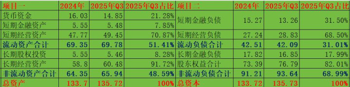 信维通信之所以赚钱不容易,核心原因是信维通信所生产的产品属于规模化标准化类的产品。从下图信维通信的资产结构来看,信维通信的资源主要配置在经营资产上面。而经营资产端的核心主要是长期经营类资产。按照2025年三季度公布的资产负债表数据来看,信维通信的短期经营资产规模为49.45亿元,长期经营资产规模为60.48亿元,很明显企业对长期经营资产的配置要多于短期经营资产。