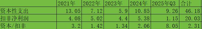 大规模的固定资产投资成了驱动信维通信业绩增长的动力源。也就是说信维通信需要投入大量的资金购买厂房,生产设备和生产设备更新,所以信维通信的资本性支出规模比较大。继续以信维通信2021年至2025年三季度资本性支出情况来看,差不多五年的时间,信维通信的资本性支出规模达到了46.18亿元,而同期企业创造的扣非净利润规模仅有20.03亿元,资本性支出规模是扣非净利润规模的2.31倍。